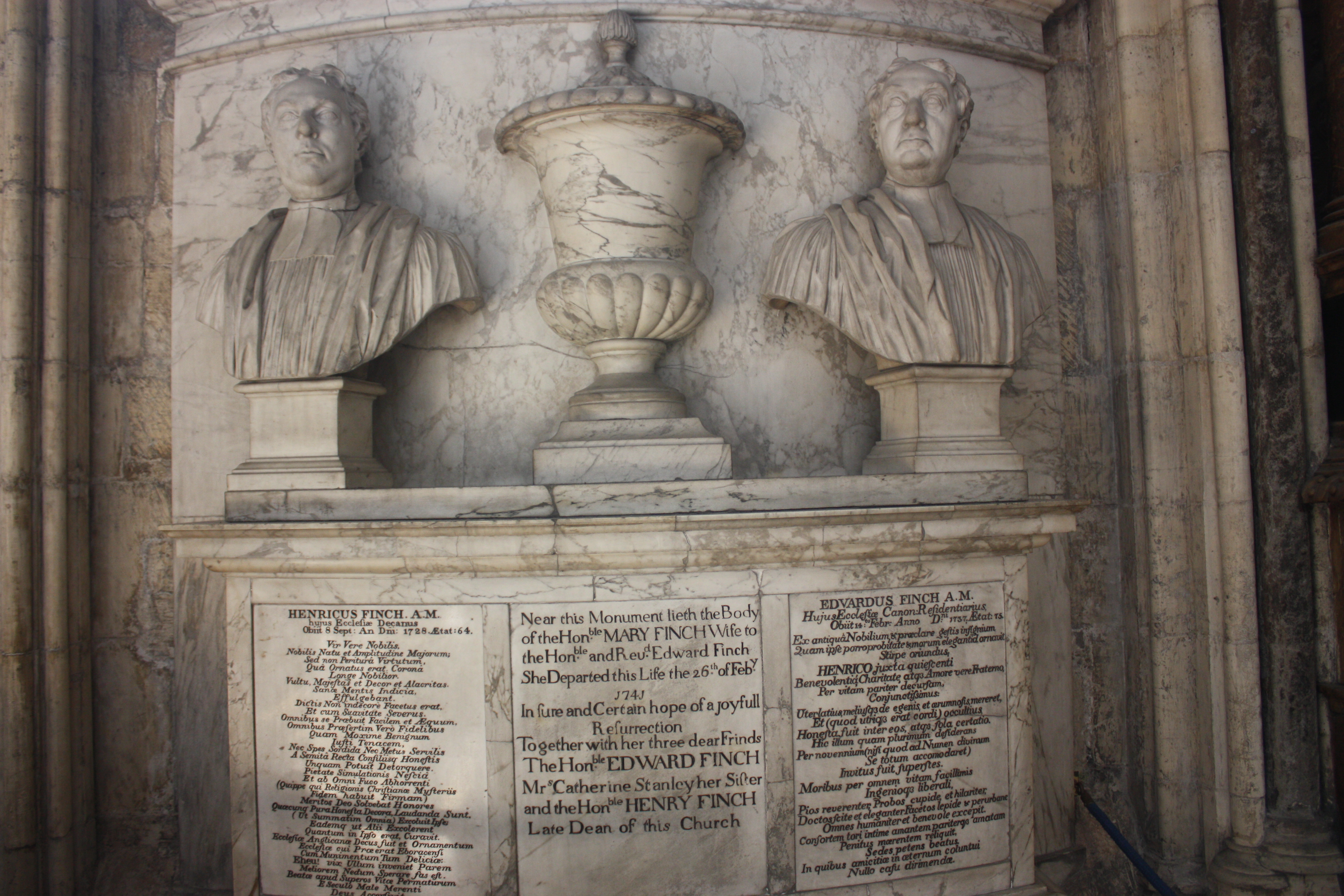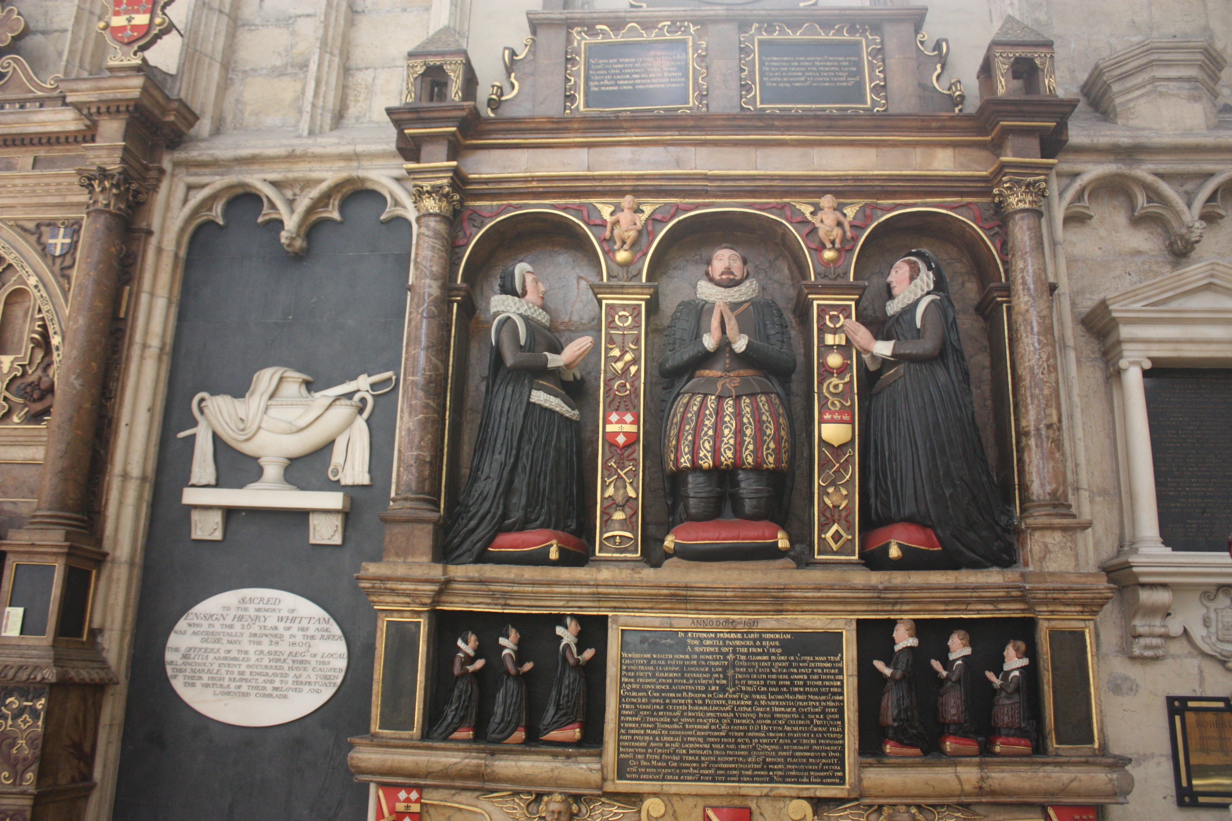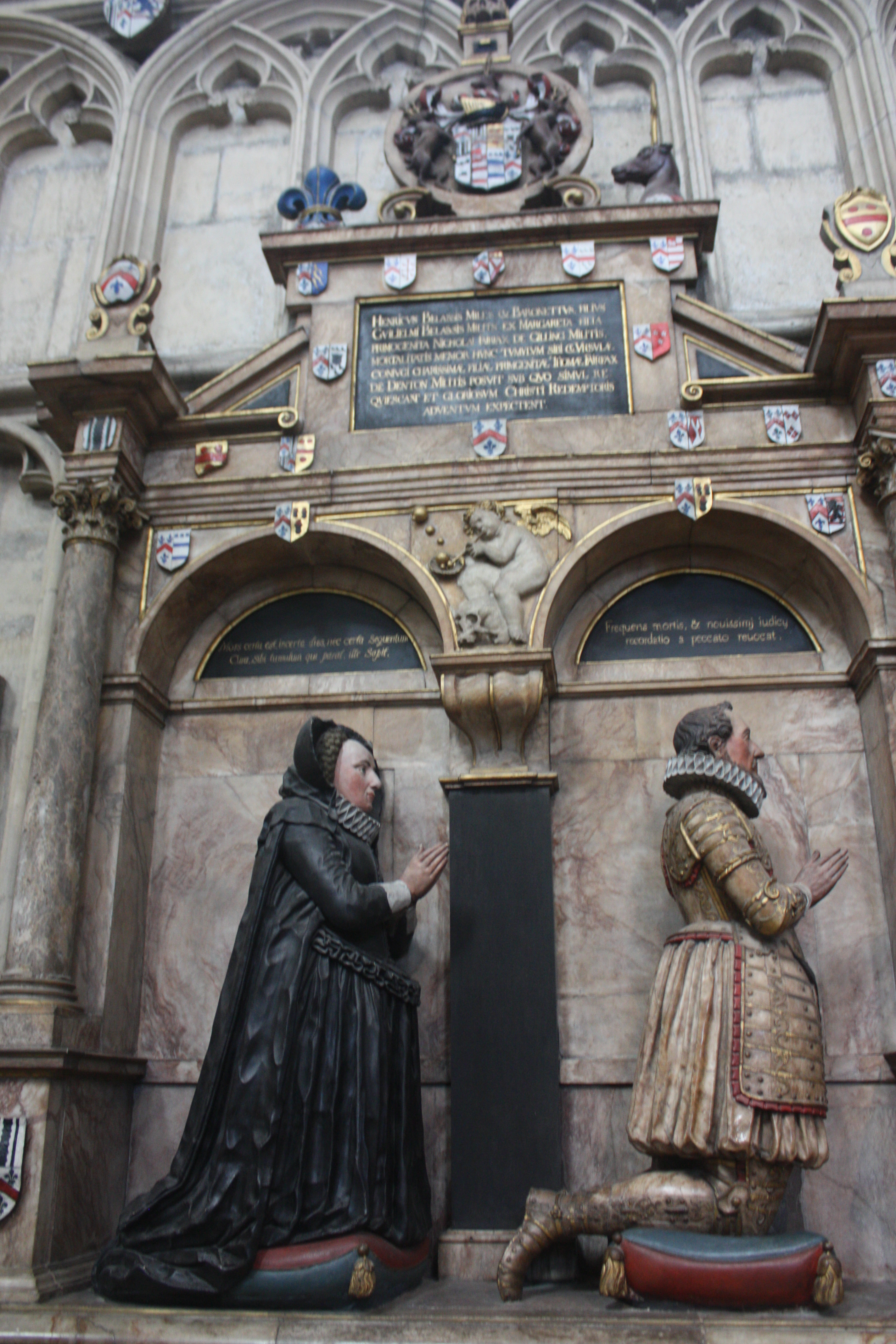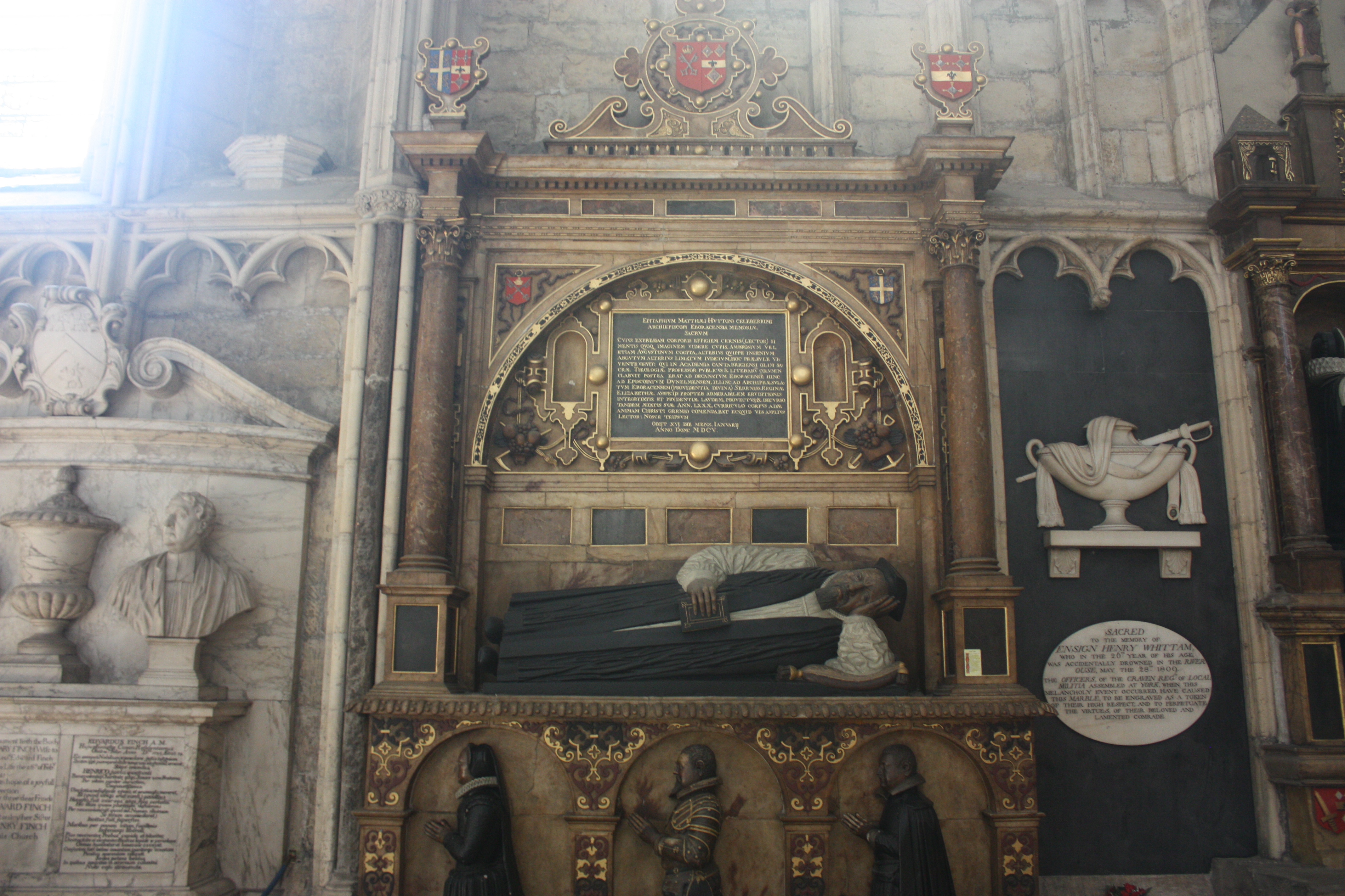 This memorial from 1685 is for Archbishop Richard Sterne of York. There is quite a long Latin inscription, but I must confess I was too lazy to continue translating once I figured out his name and rank.