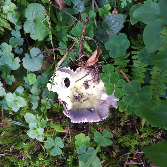 I didn’t really notice the green stuff until I posted this photograph. Is the mushroom nestled in a bed of clover or shamrocks? (And what is the difference between the two – I really don’t know.) Are they native to this area?