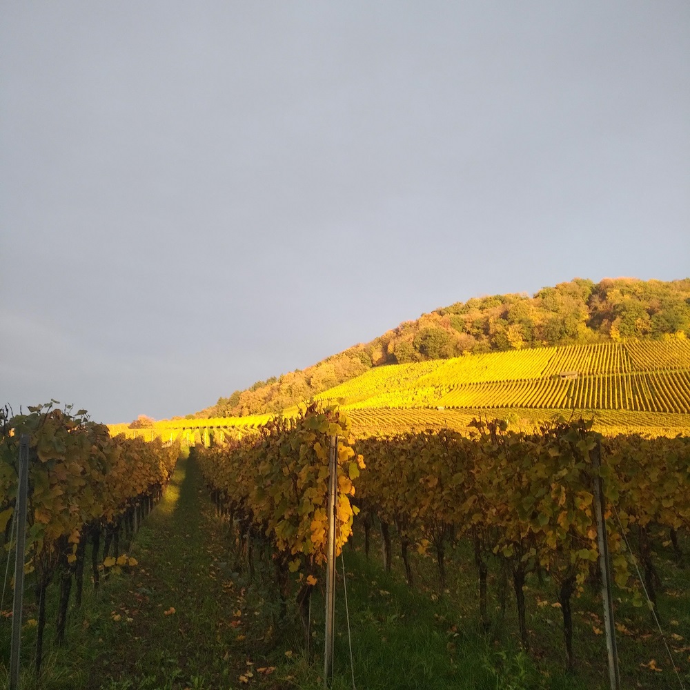 Walking by Castellberg, on the outskirts of Sulzburg this week, I was struck by the beauty of the vineyards in the late afternoon sun. The fields were a blaze of gold.