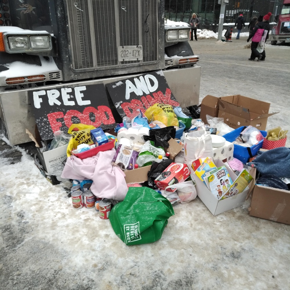 Today, a few pictures that I haven’t seen in news coverage that has focused on trucks blocking streets with their horns blaring. We’ll save the reflections for tomorrow.