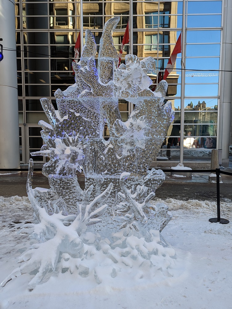 More ice sculptures from Sparks Street in downtown Ottawa, part of the 2023 Winterlude festival. (I’m ignoring the Super Bowl today, though I may watch the game – I bought some good snacks.)