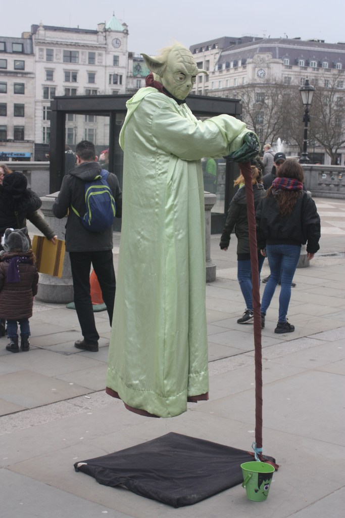Jedi powers are limited unless you are in a film; you don’t usually find them in real life. Someone who is apparently floating above the pavement isn’t really doing so. Think about it – if they really had those sorts of powers they would be doing more with them than hang out in Trafalgar Square to impress the tourists in return for spare change.