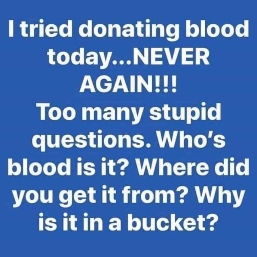 I never did like the blood donor questionnaire. It never made sense to me that I had to answer the same questions over and over several times a year. I have a donor card, I am in your system, obviously you have taken my blood before.