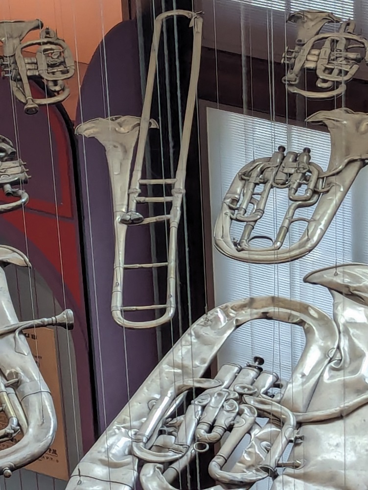 I’d say no musical instruments were harmed in creating this sculpture, but they were. At least they weren’t currently being used..
